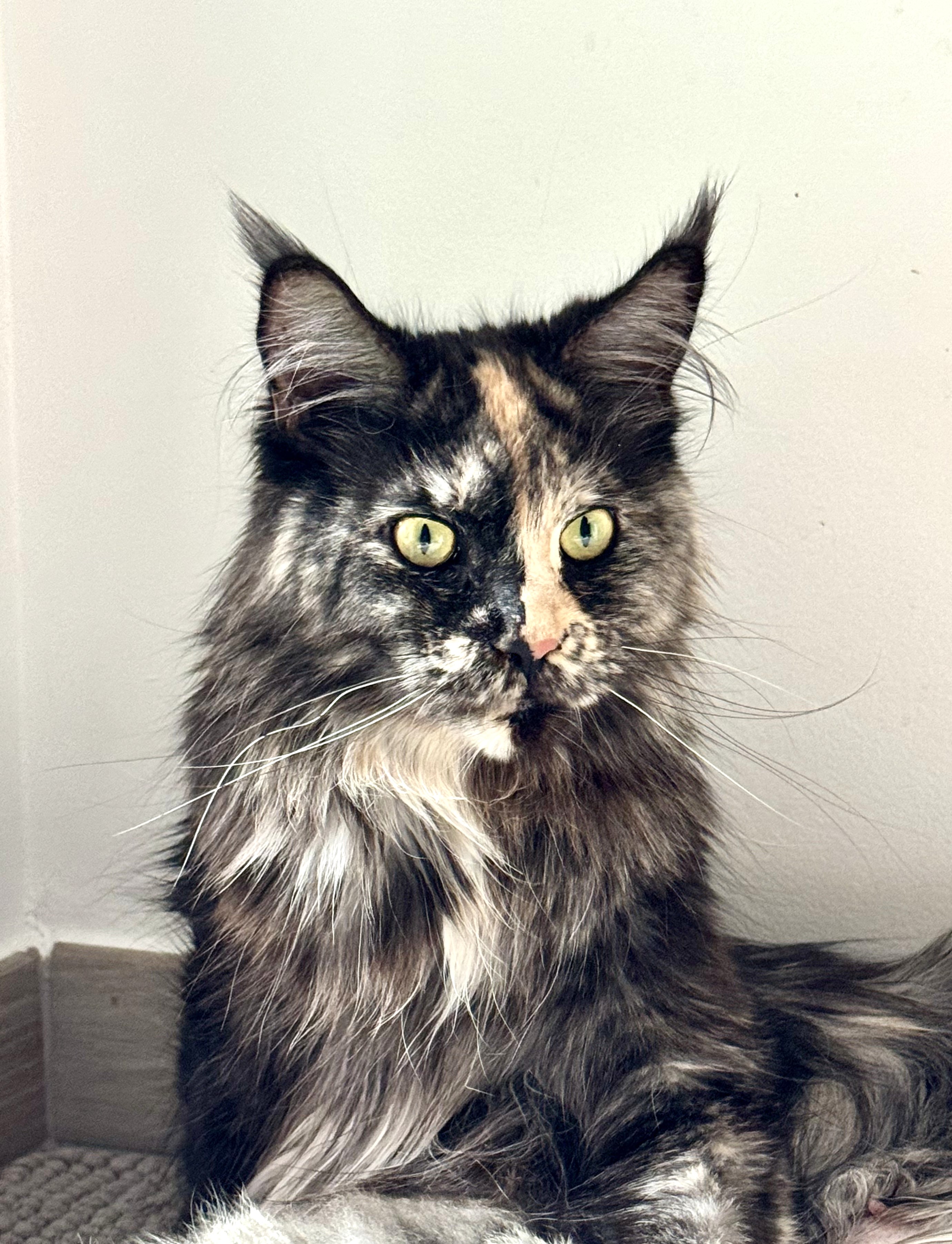 Le Maine Coon est une race de chats à poil long originaire de l’État du Maine, aux États-Unis. Reconnu pour son physique rustique et sa grande taille, il peut atteindre à l’âge adulte une longueur d’environ 48 à 100 cm du museau à l’extrémité de la queue. Le Maine Coon se distingue par plusieurs caractéristiques morphologiques typiques : une queue longue et fournie en panache, un museau carré, de grandes oreilles ornées de plumets ainsi qu’une fourrure longue et dense, adaptée aux climats rigoureux. La race s’est développée naturellement à partir de croisements entre des chats de ferme locaux et d’autres chats aux origines diverses, introduits par les immigrants européens. Ces chats ont su s’adapter aux conditions de vie difficiles et au climat froid de la région, ce qui a contribué à forger la robustesse et la résistance propres au Maine Coon. Le Maine Coon est aujourd’hui considéré comme l’une des plus grandes races de chats domestiques, aux côtés du Savannah, une race également originaire des États-Unis, issue du croisement avec le serval, un félin sauvage africain. Il est également reconnu comme la plus ancienne race naturelle nord-américaine.